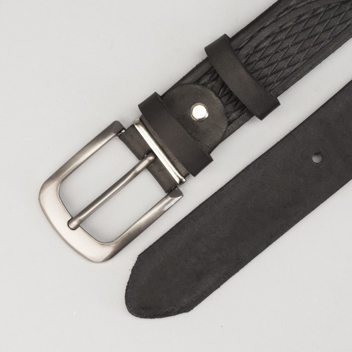 Ремень мужской, винт, пряжка под серебро, ширина - 3,5см, чёрный