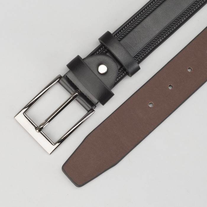 Ремень мужской, винт, пряжка под тёмный металл, ширина - 4 см, цвет чёрный