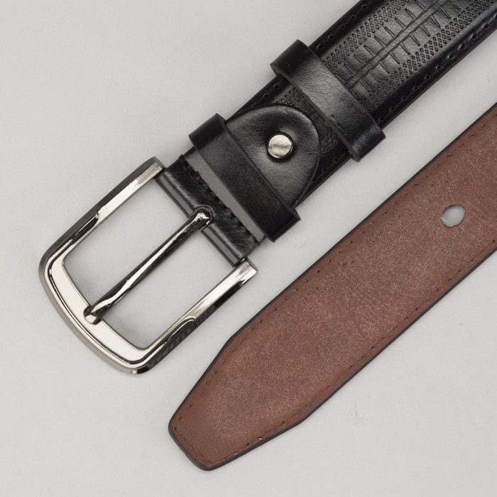 Ремень мужской, винт, пряжка под тёмный металл, ширина - 4 см, цвет чёрный