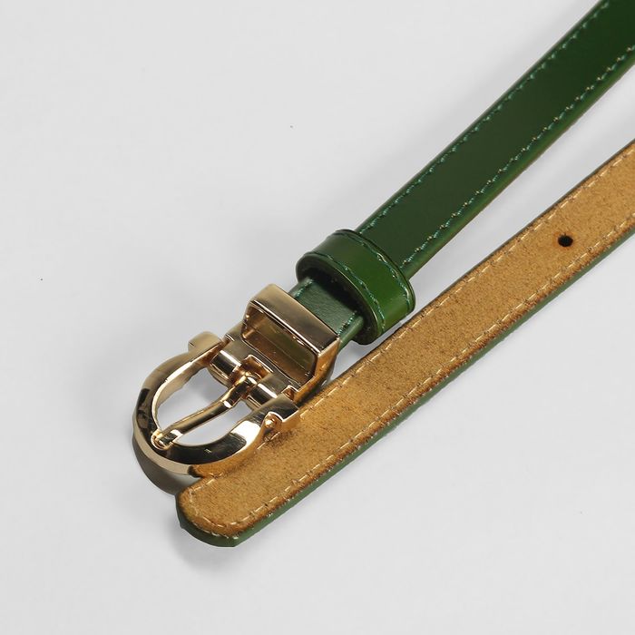 Ремень женский, 2 строчки, пряжка и хомут золото, ширина - 1,5 см, цвет зелёный