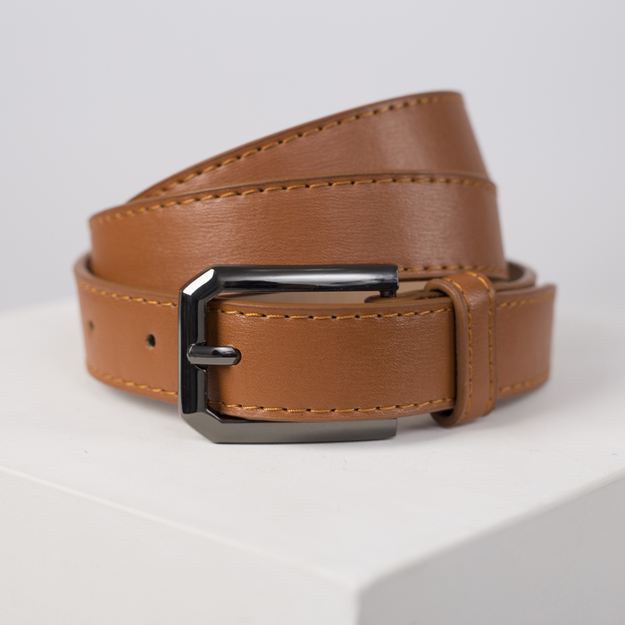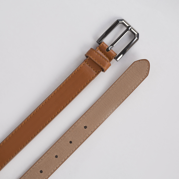 Ремень женский, 2 строчки, пряжка тёмный металл, ширина - 2,3 см, цвет коричневый