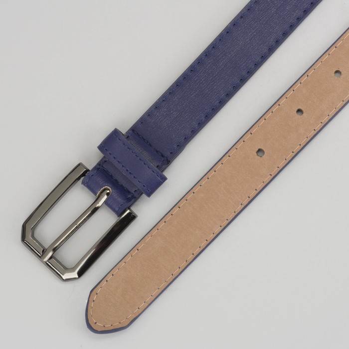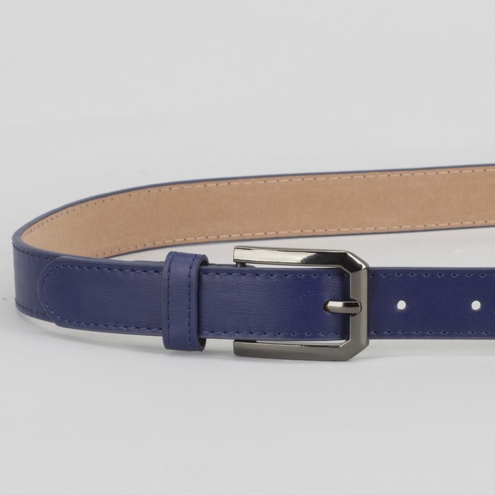 Ремень женский, 2 строчки, пряжка тёмный металл, ширина - 2,3 см, цвет синий