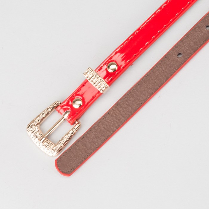 Ремень женский "Алия", пряжка и хомут под золото, 2 строчки, цвет красный