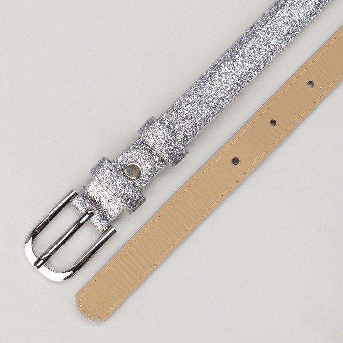 Ремень женский, блеск, гладкий, пряжка металл, ширина - 2 см, цвет серый