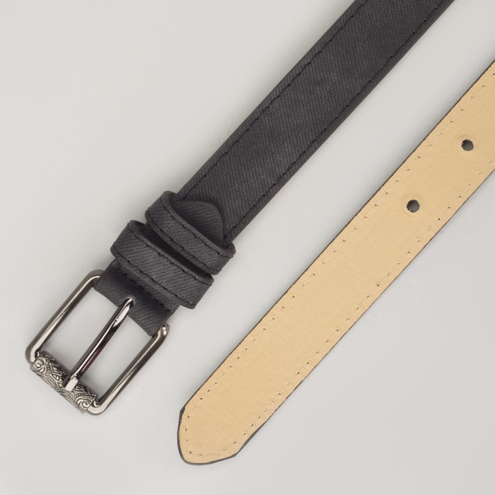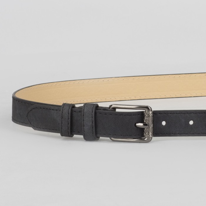 Ремень женский, джинс, 2 строчки, пряжка тёмный металл, ширина - 2,3 см, цвет чёрный