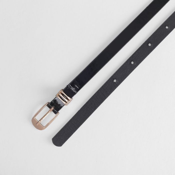 Ремень женский, гладкий лак, хомут и пряжка золото, ширина - 1,5 см, цвет чёрный