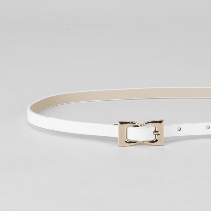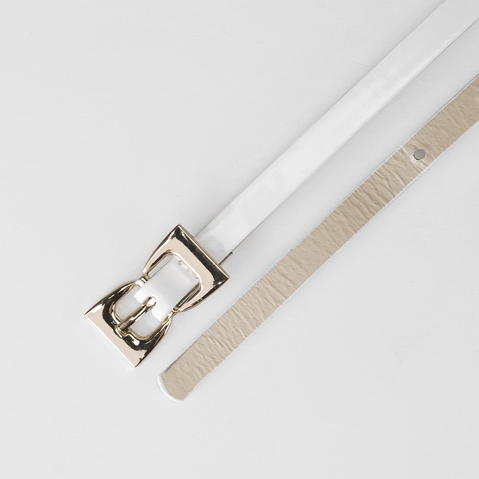 Ремень женский, гладкий лак, пряжка и хомут золото, ширина - 0,8 см, цвет белый
