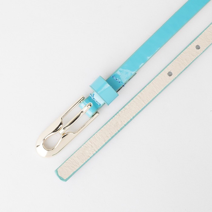 Ремень женский, гладкий лак, пряжка и хомут золото, ширина - 0,8 см, цвет бирюзовый