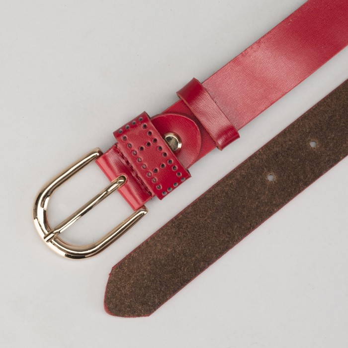 Ремень женский гладкий "Луиза", винт, пряжка под золото, ширина - 3см, красный