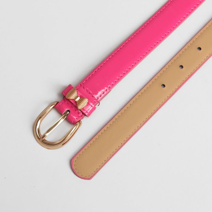 Ремень женский, гладкий, пряжка бант золото, цвет малиновый