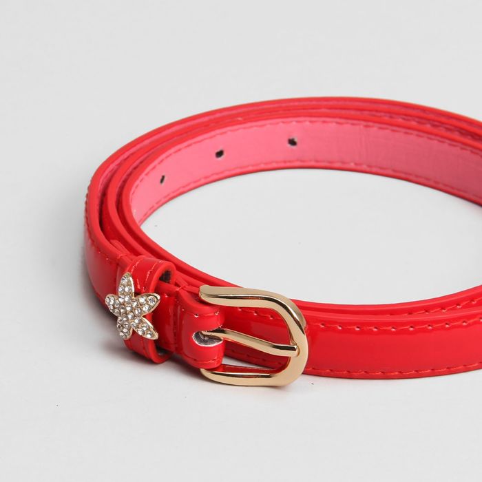 Ремень женский, гладкий, пряжка цветок золото, цвет красный