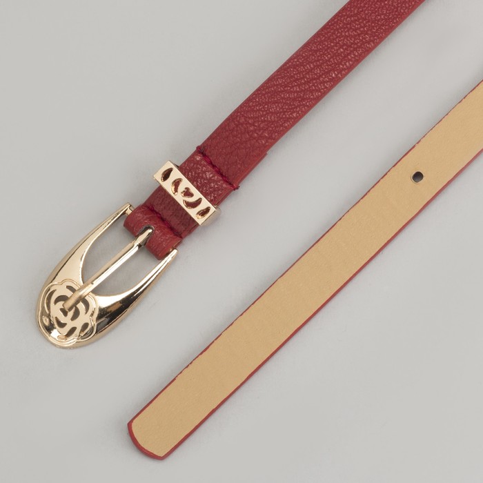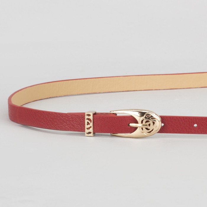 Ремень женский, гладкий, пряжка хомут золото, ширина - 1,3 см, цвет красный