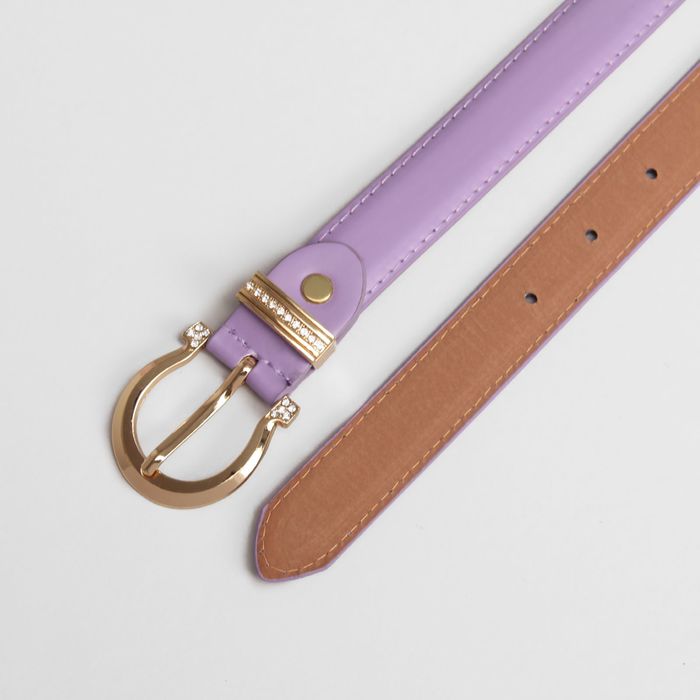 Ремень женский, гладкий, пряжка и хомут золото, цвет сиреневый