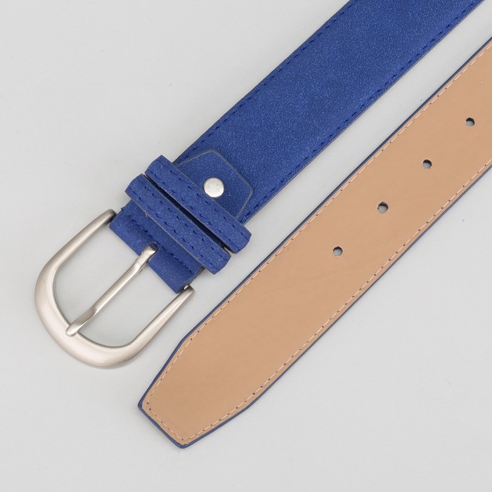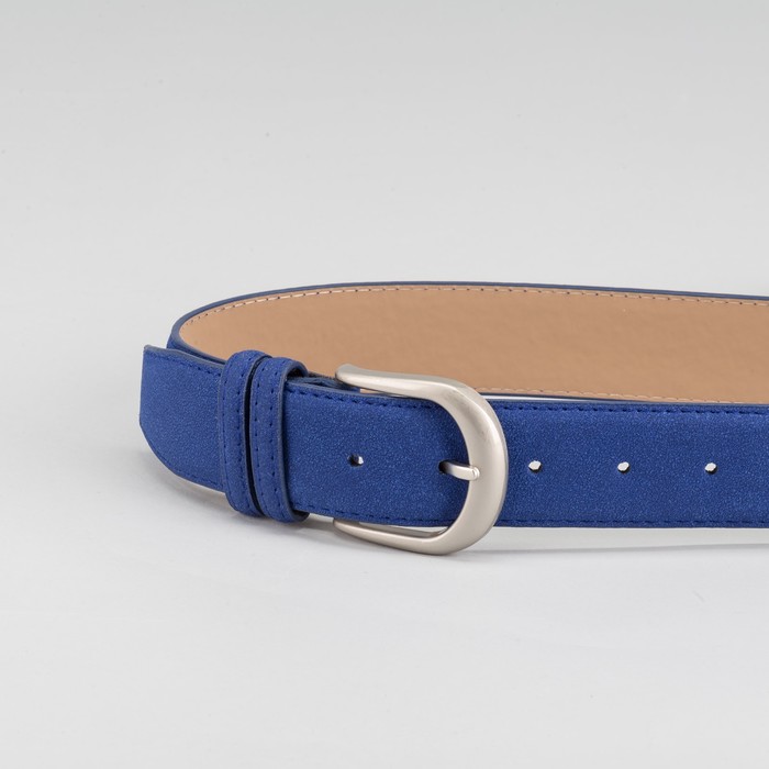 Ремень женский, гладкий, пряжка матовый тёмный металл, ширина - 3,5 см, цвет синий