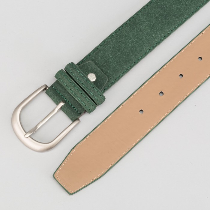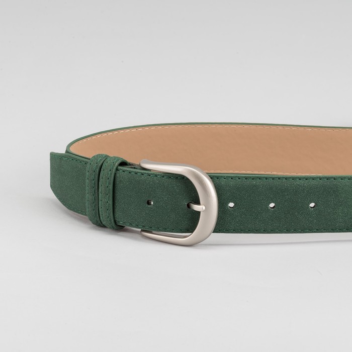 Ремень женский, гладкий, пряжка матовый тёмный металл, ширина - 3,5 см, цвет зелёный