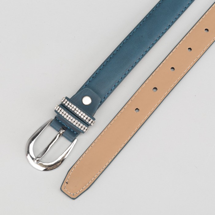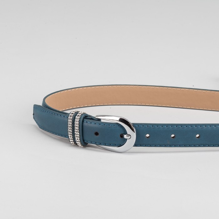 Ремень женский, гладкий, пряжка металл, хомут стразы, ширина - 3 см, цвет изумрудный