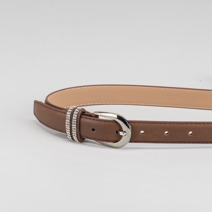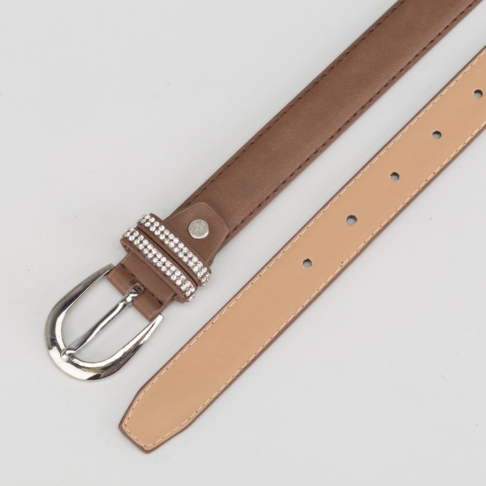 Ремень женский, гладкий, пряжка металл, хомут стразы, ширина - 3 см, цвет коричневый