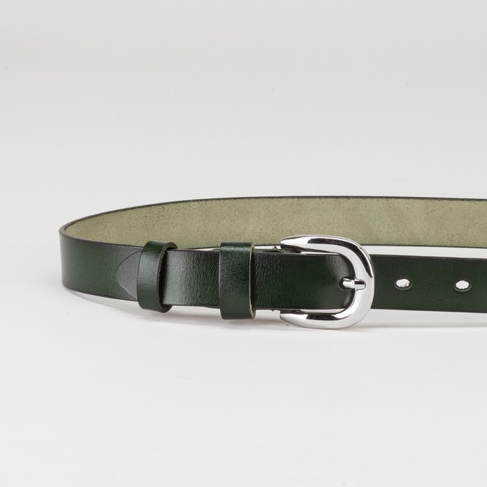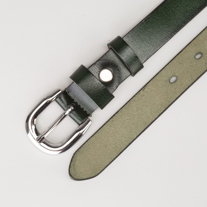 Ремень женский, гладкий, пряжка серебро, ширина - 2,5 см, цвет зелёный