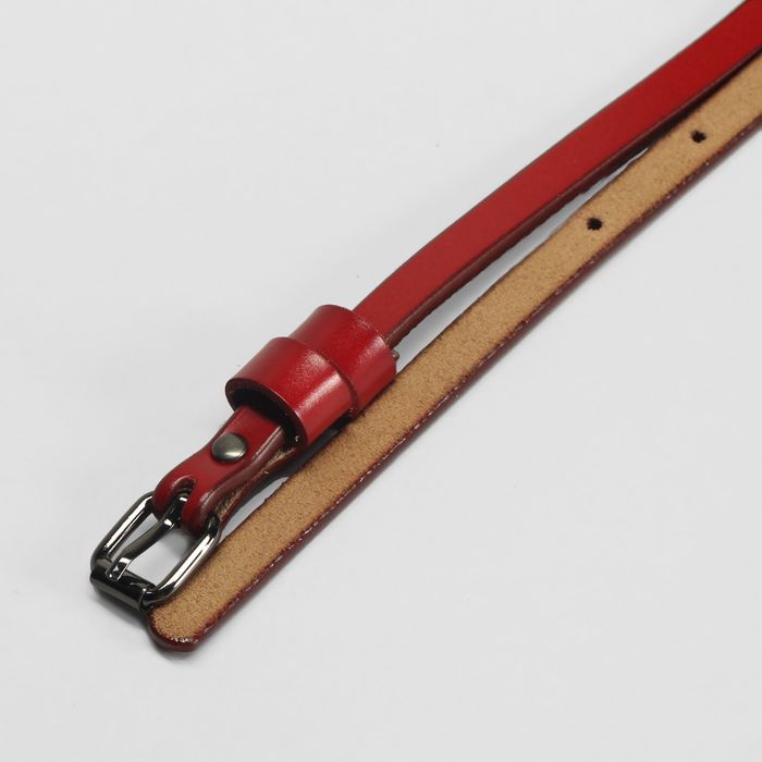 Ремень женский, гладкий, пряжка тёмный металл, ширина - 0,9 см, цвет красный