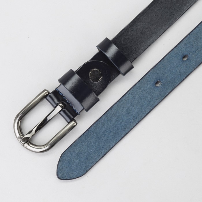 Ремень женский, гладкий, пряжка тёмный металл, ширина - 2,2 см, цвет синий