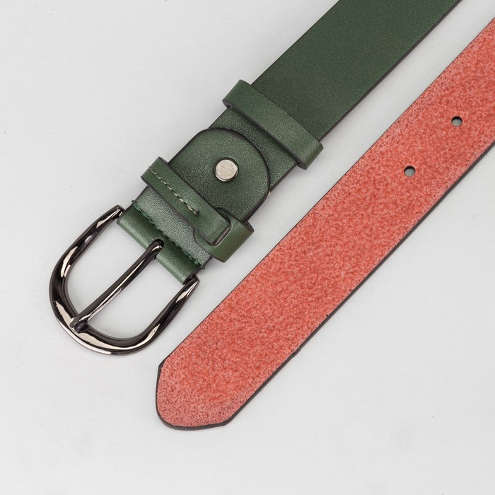 Ремень женский, гладкий, пряжка тёмный металл, ширина - 3,5 см, цвет зелёный