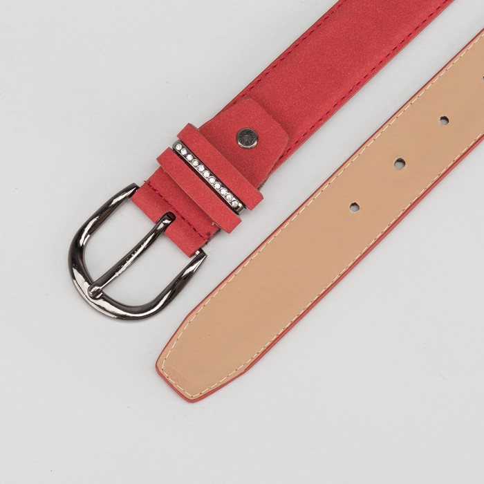 Ремень женский, гладкий, пряжка тёмный металл, ширина - 3 см, цвет красный
