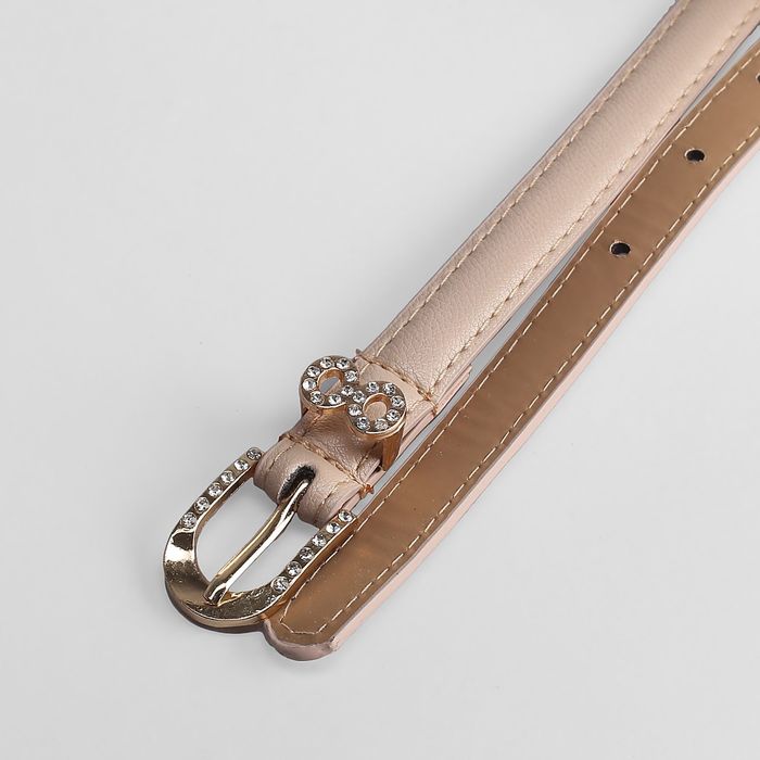 Ремень женский, гладкий, пряжка золото, хомут стразы, ширина - 1,5 см, цвет бежевый