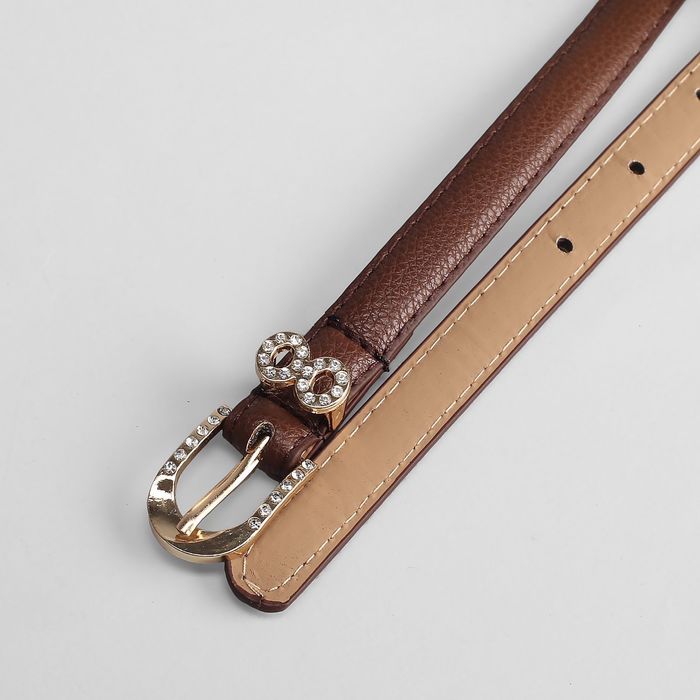 Ремень женский, гладкий, пряжка золото, хомут стразы, ширина - 1,5 см, цвет коричневый