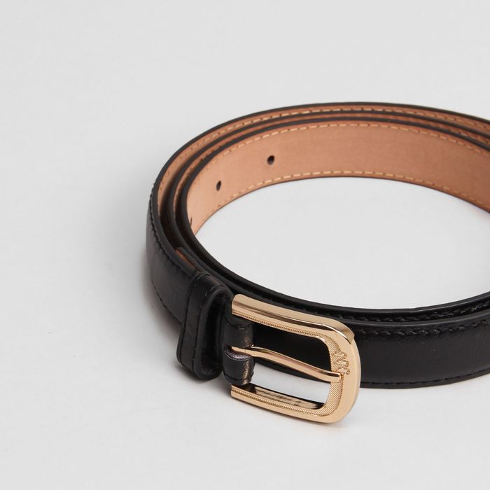 Ремень женский "Глянец", гладкий, 2 строчки, пряжка под золото, цвет чёрный