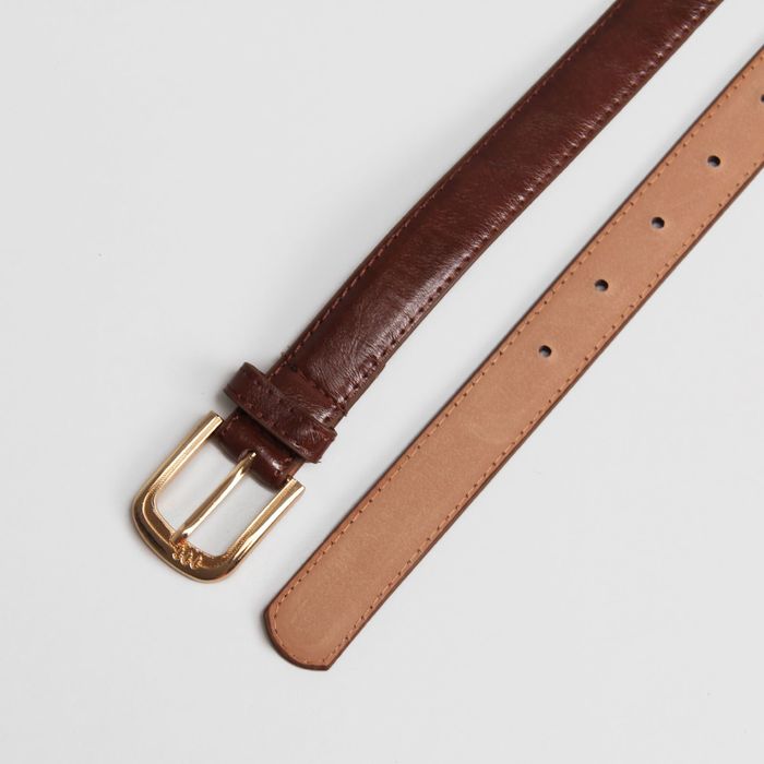 Ремень женский "Глянец", гладкий, 2 строчки, пряжка под золото, цвет кофейный