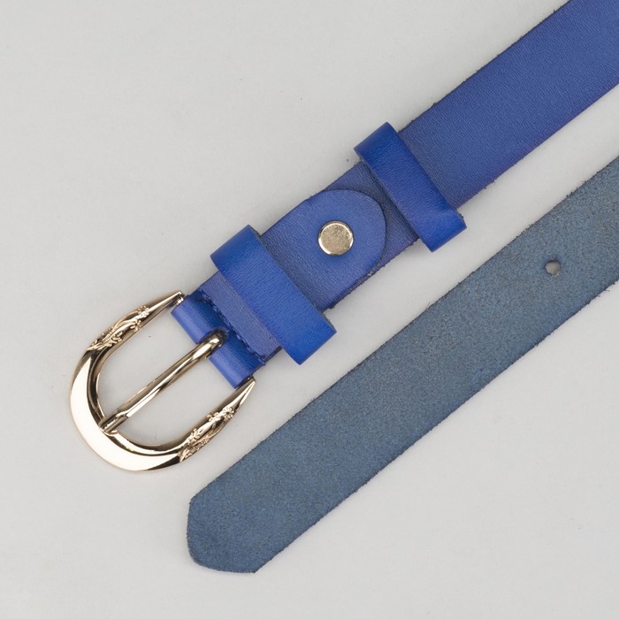 Ремень женский, "Глянец", гладкий, винт и пряжка под золото, ширина - 2,5см, синий