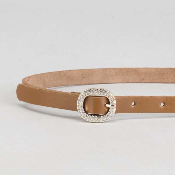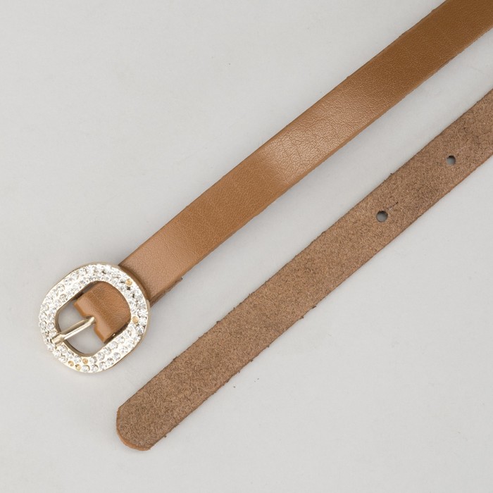 Ремень женский "Грация" гладкий, пряжка под золото, стразы, ширина - 1,5см, светло-коричневый