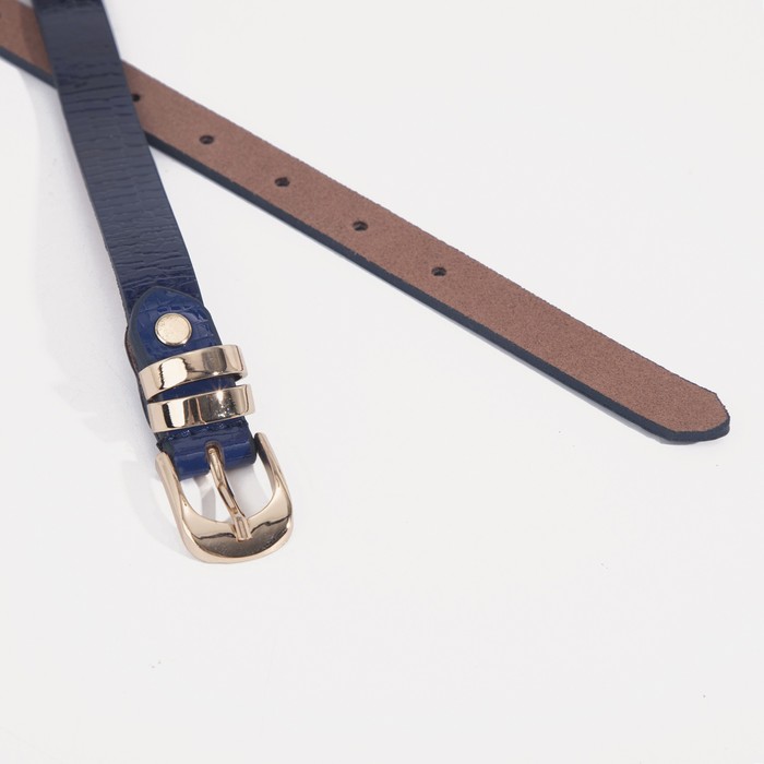 Ремень женский "Кейт", винт, пряжка и хомут под золото, цвет синий