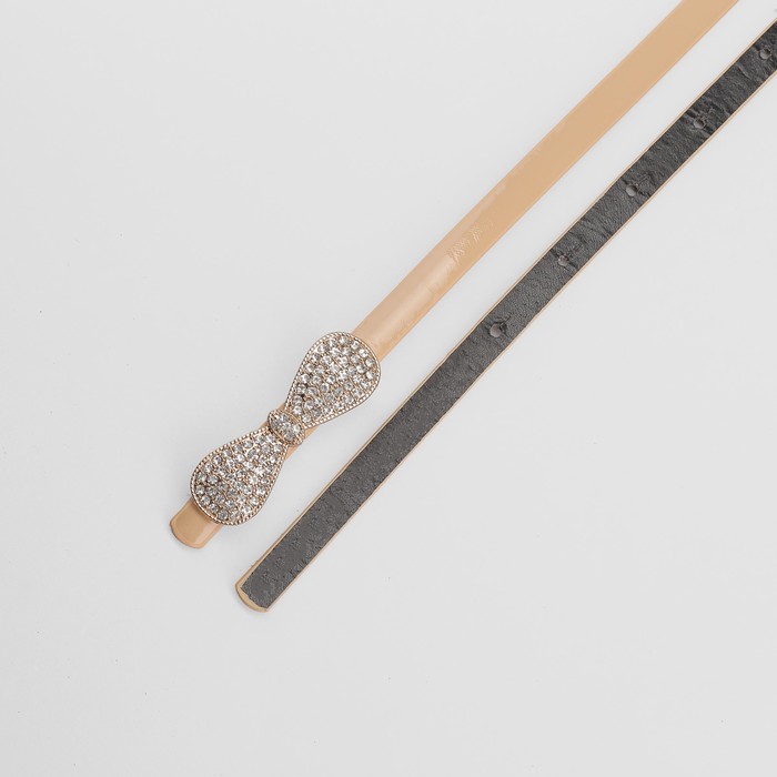 Ремень женский, на гвоздике, ширина 1 см, гладкий, пряжка под золото, стразы, цвет бежевый