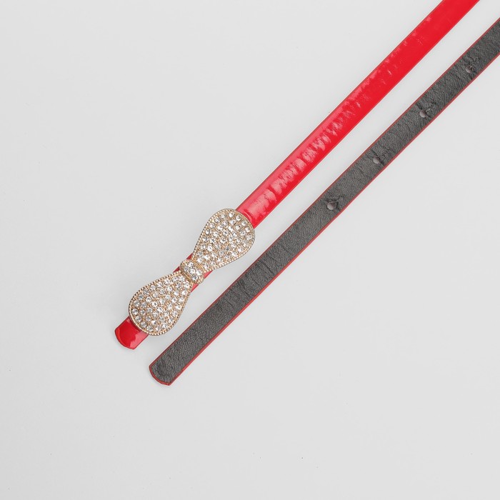Ремень женский, на гвоздике, ширина 1 см, гладкий, пряжка под золото, стразы, цвет красный
