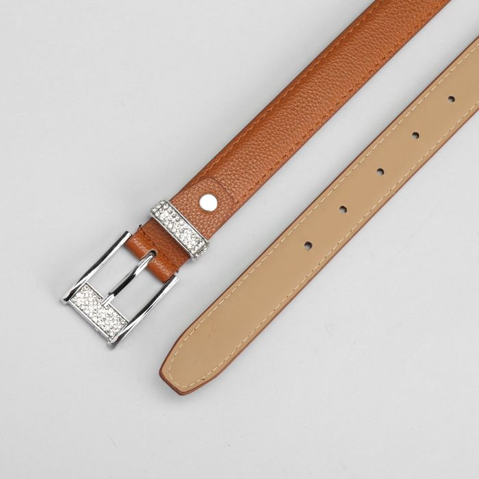 Ремень женский, пряжка и хомут стразы металл, ширина - 3 см, цвет рыжий