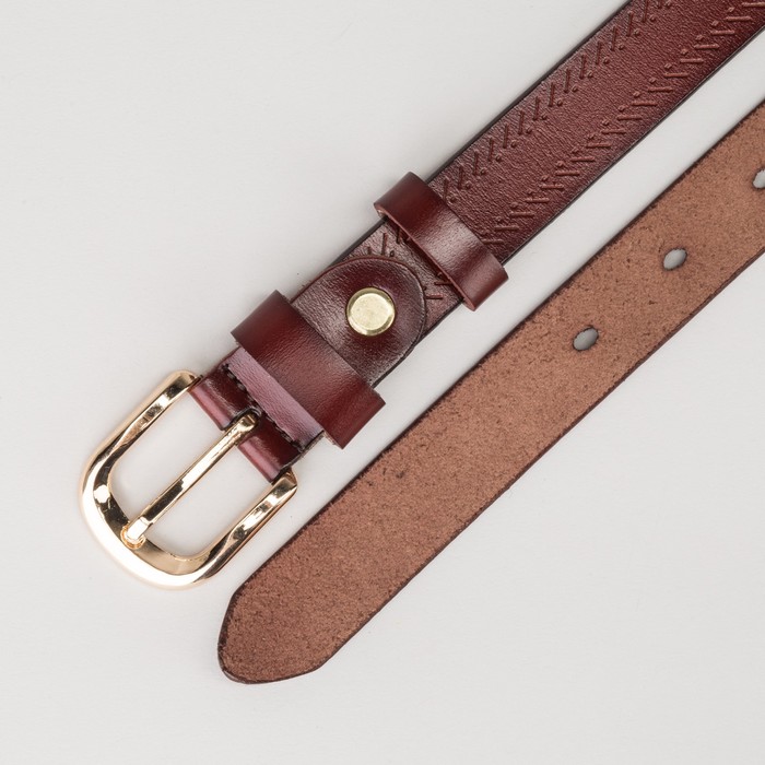 Маленькие, казалось бы, незначительные элементы зачастую завершают, дополняют образ, подчёркивают статус, стиль и вкус своего обладателя. Ремень женский, пряжка золото, ширина - 2,5 см, цвет бордовый — одна из подобных деталей. Это вещь достойного качества, которая может стать прекрасным подарком по любому поводу.