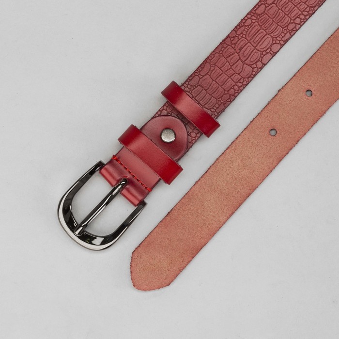 Ремень женский, рептилия, пряжка тёмный металл, ширина - 3 см, цвет красный