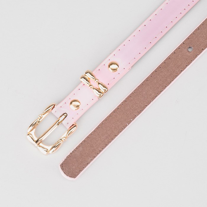 Ремень женский "Сара", пряжка и хомут под золото, 2 строчки,цвет розовый