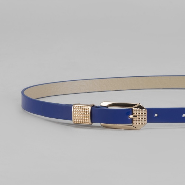 Ремень женский "Шик", гладкий, лакированный, пряжка и хомут под золото, ширина - 1,3см, синий
