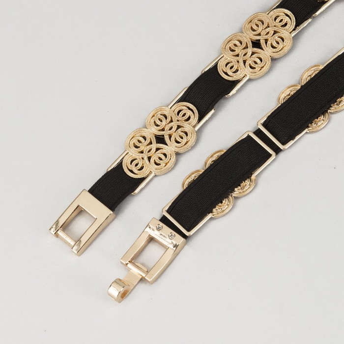 Ремень женский, ширина 1.5 см, резинка, завитки, цвет чёрный