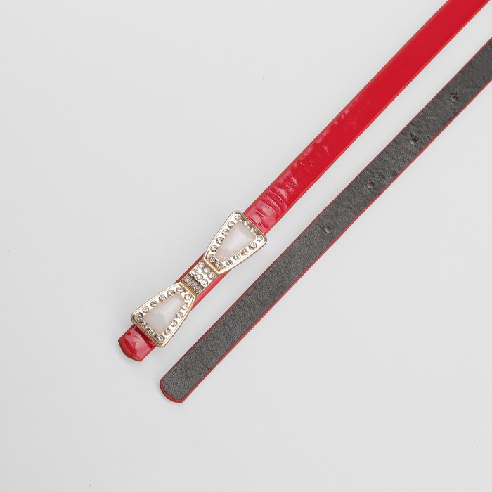 Ремень женский, ширина 1 см, гладкий, пряжка под золото, стразы, цвет красный