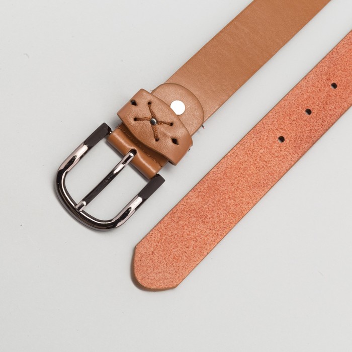 Ремень женский, ширина 3.5 см, гладкий, винт, пряжка тёмный металл, цвет бежевый