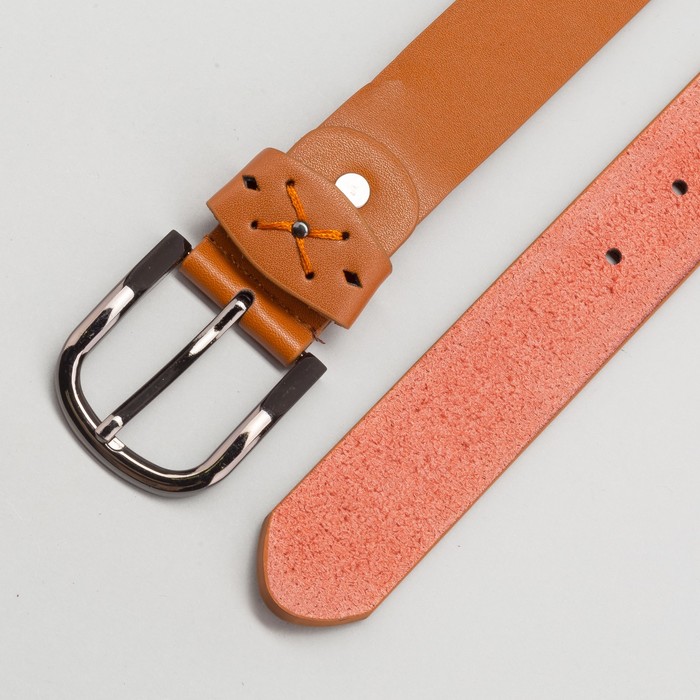 Ремень женский, ширина 3.5 см, гладкий, винт, пряжка тёмный металл, цвет рыжий