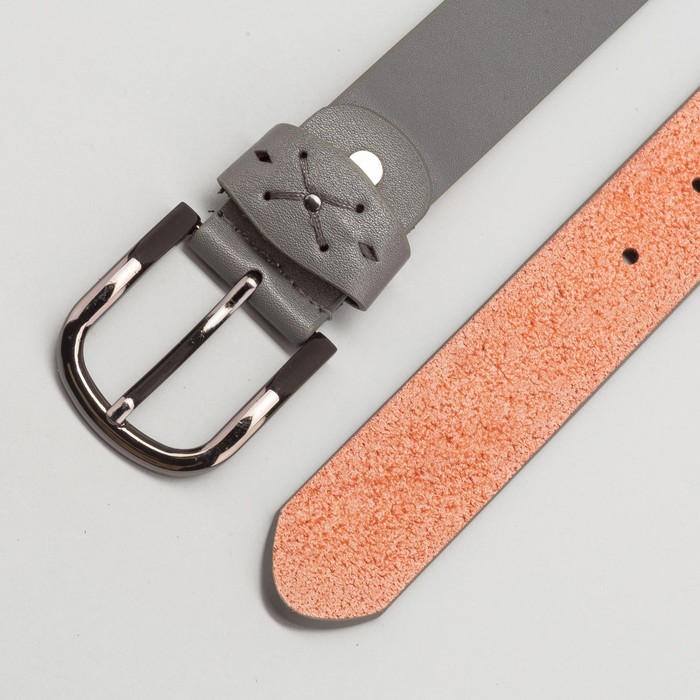 Ремень женский, ширина 3.5 см, гладкий, винт, пряжка тёмный металл, цвет серый