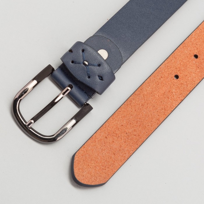 Ремень женский, ширина 3.5 см, гладкий, винт, пряжка тёмный металл, цвет тёмно-синий