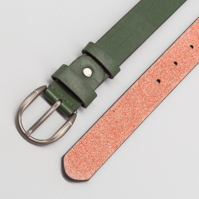 Ремень женский, ширина 3 см, винт, пряжка тёмный металл, цветы, цвет зелёный