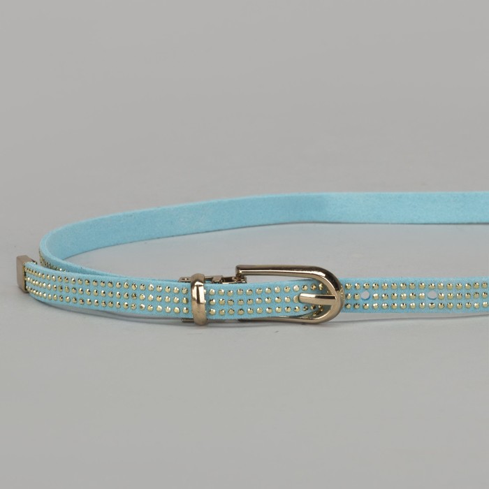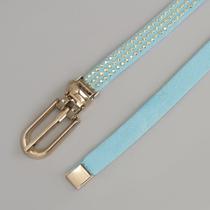 Ремень женский, стразы, пряжка хомут, кончик золото, ширина - 1 см, цвет голубой