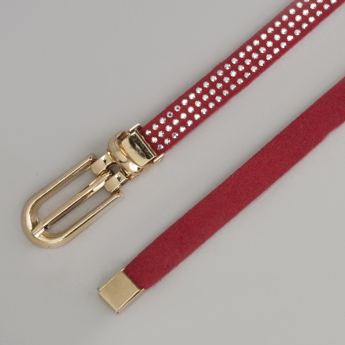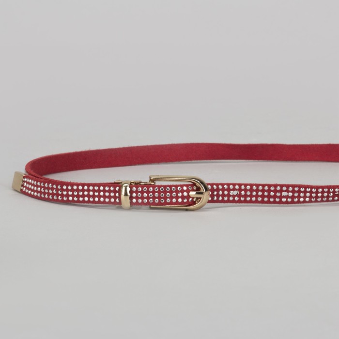 Ремень женский, стразы, пряжка хомут, кончик золото, ширина - 1 см, цвет красный