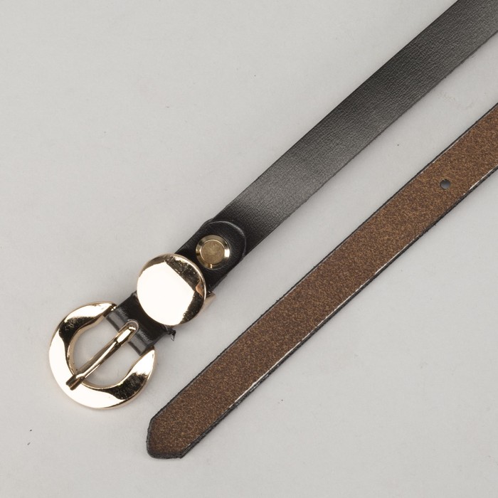 Ремень женский "Сьюзи" гладкий, пряжка и хомут под золото, ширина - 1,5см, чёрный